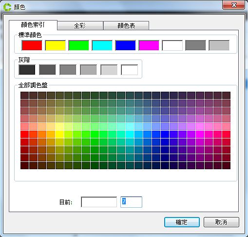 在顏色選取視窗中,您可以選取255種顏色,一旦指定圖層顏色,在此圖層繪製的物件都會套用該顏色值。這就是所謂的"BYLAYER"設定值。