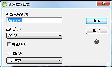 2、在[新型式名稱]中,輸入型式名稱(如:Dimension),按下[繼續]。