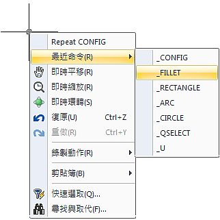 若在命令列按下滑鼠右鍵,可以呼叫最近執行過的指令重新執行。