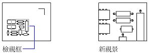 檢視框代表您的視圖,您可以縮小或放大它,以及繞著圖面移動。確定檢視框位置並調整其大小會進行平移或縮放,以使用檢視框中的影像來填滿視埠。不適用於透視投影。