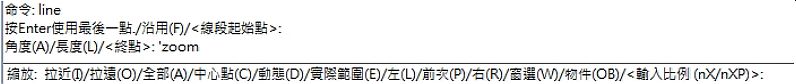 要設為通透指令,可在一般命令前加上撇號( ' ),如下圖,在line命令執行中,執行通透zoom指令。