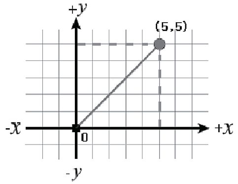 如下圖,在2D中一個點可以用距離原點(0,0),以逗號分隔的的X,Y座標值表示。