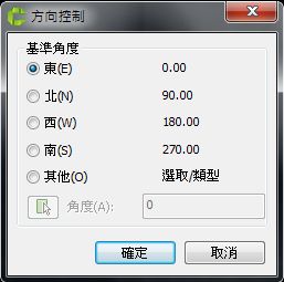 出現以上對話窗後,再按下[方向]按鈕,即可選擇基準(啟始)角度。
