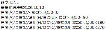 相對於前一個參考點,最後點不需要作任何表示,只要輸入@符號,就能以最後點的座標資料指定一個點。