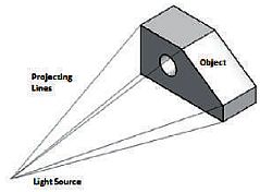 投影是一種將3D物體以平面方式顯示的方法,藉由光源,物件的表面呈一直線投影在平面上,物件的陰影在平面上以2D方式顯現。
