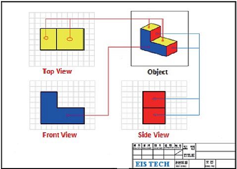 不同立足點,方向以及3D物件的尺寸與輪廓的投影,可以在平面上以2D方式表示。