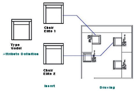 如果您將屬性定義在圖塊上,之後,您在插入該圖塊時,系統會提示您輸入數值,每個圖塊可以有不同的屬性值。