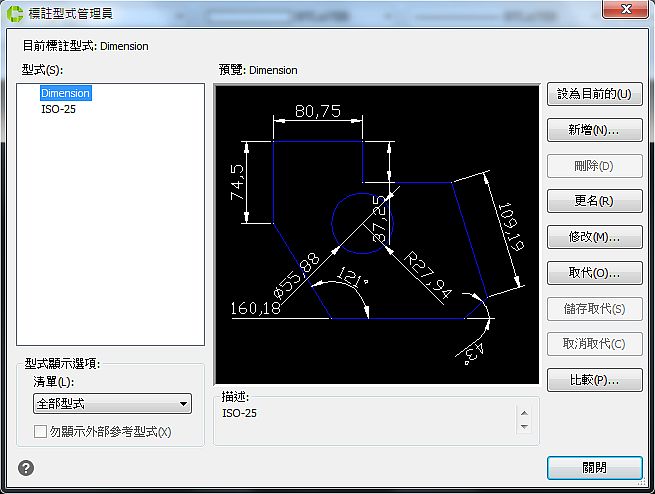 | 型式 | 顯示目前所有的標註型式 |