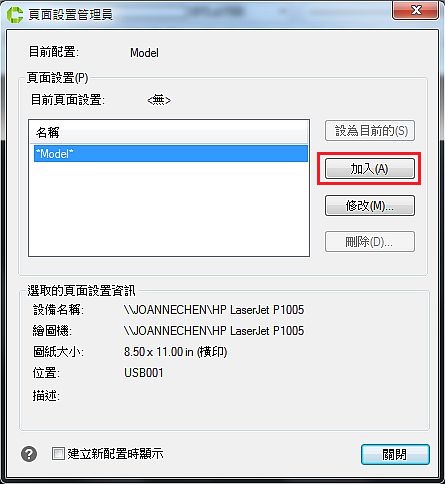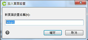 1、 在[頁面設置管理員]中,按下[加入],並輸入新頁面名稱[Setup1]。
