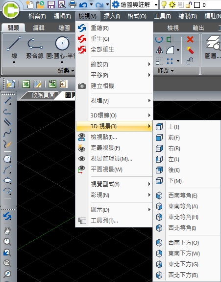 1、下拉選單:[檢視]→[3D視景]