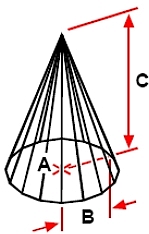 指定底部圓即上部圓半徑,高度,建立3D圓錐物件。