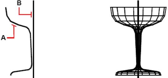 以1條曲線,環繞1條直線旋轉軸而成的曲面建立3D物件。