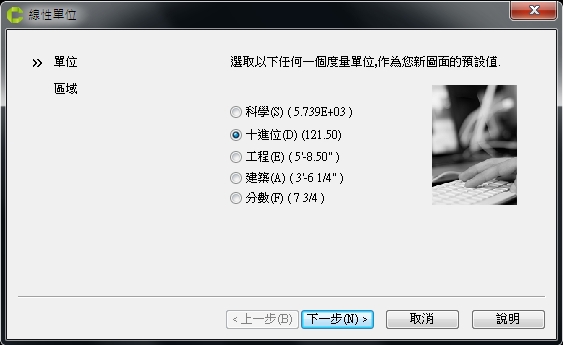 單位請選擇 [十進位] ,按 [下一步] 繼續。