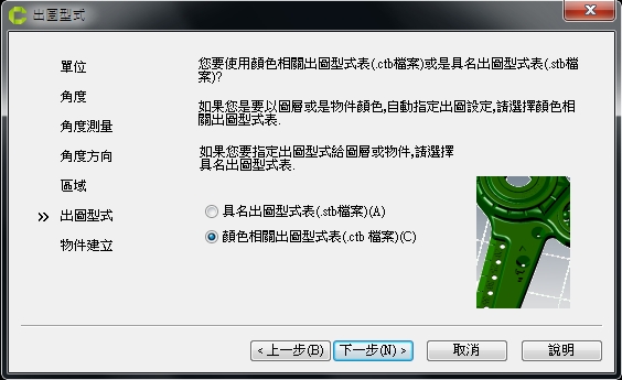 設定預設出圖型式表後 (預設使用 *.ctb檔案)後,按下一步。