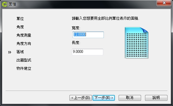 在區域設定中,輸入圖紙的大小後,按下一步。