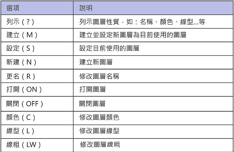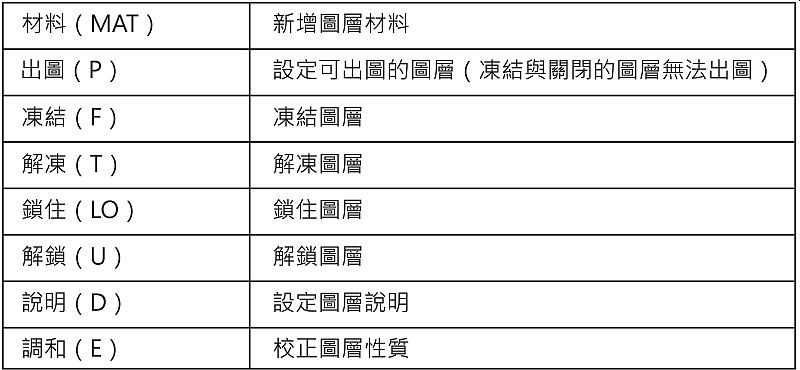 圖層(LAYER)命令用於管理圖層及圖層性質。