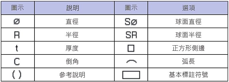 若圖面物件不能完全表達所有資訊,則可以使用輔助標註符號說明之。